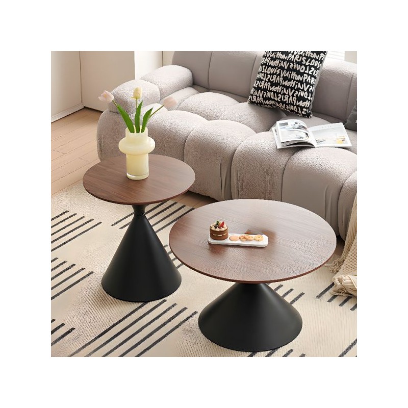 ensemble 2 table salon pieds conique noir /Marron/Neutre